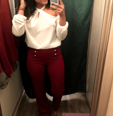 Walking into this thrift shop, I got more of a “dresses and slacks are my casual attire” vibe. Aesthete Luxury is where I shop for business, church, and sometimes my more cute but classy clothing! This shop is more on the expensive side, but that also depends on what you are shopping for. Here I found this white sheer, cold shoulder top which was $8, the brand was Forever 21 and it retails for about $20. The red slack pants are high wasted with four buttons down the side making for a very flattering look. These pants were $28 but retail for about $50. There were also formal dresses, nice sweaters and Kate Spade purses! If you dress like you are always in business mode, this is the store for you.